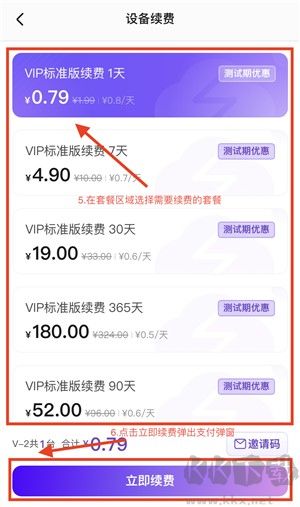 在App的底部菜單欄中,您會看到多個選項。請從中找到“續(xù)費”按鈕并點擊進入。在續(xù)費頁面,您將看到可供選擇的各種套餐,通常會有不同的時長和費用標準。請仔細查看這些套餐的詳情,根據(jù)您的需求挑選合適的套餐。