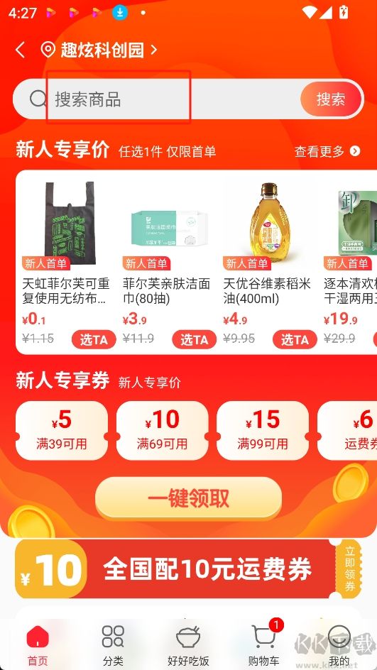 1.進(jìn)入app主頁,從最上方的搜索框搜索自己想買的商品;