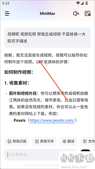 3、再反問視頻生成在哪里,它就會回答無法生成視頻了