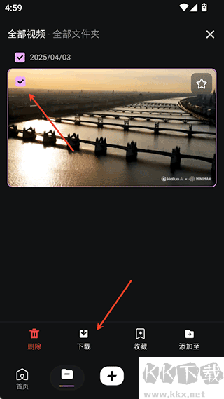 2、隨后,底部將出現(xiàn)下載按鈕。需在視頻瀏覽界面的左上角繼續(xù)完成勾選操作,之后點擊該下載按鈕。