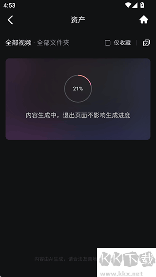1、可前往 APP 的資產(chǎn)界面,在此界面中查看已生成且需要下載的視頻資源,之后點擊右上角的勾選按鈕。