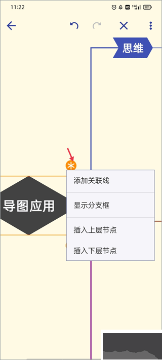 7、點擊右邊米字圖標(biāo),出現(xiàn)幾個選項,可添加關(guān)聯(lián)線、插入上下層節(jié)點。