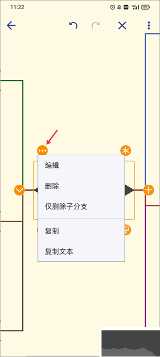 6、點擊左上方三點圖標(biāo),彈出選項,可對節(jié)點文字內(nèi)容操作,還能刪除子分支。
