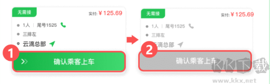 操作步驟:通過滑動(dòng)操作,依次執(zhí)行①「確認(rèn)乘客上車」;②“乘客已上車” 按鈕置灰(不可操作)。