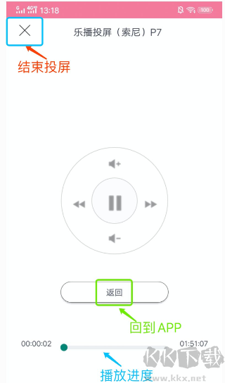 5、投屏成功之后,可點(diǎn)擊遙控器按鈕,對(duì)影片的播放進(jìn)度、音量大小進(jìn)行控制,并可通過(guò)此操作退出投屏功能。