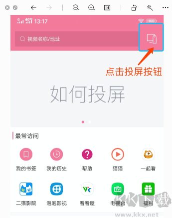 4、當(dāng)尋找到心儀的電影視頻后,點(diǎn)擊屏幕底部的投屏按鈕,將視頻投屏至電視進(jìn)行播放。