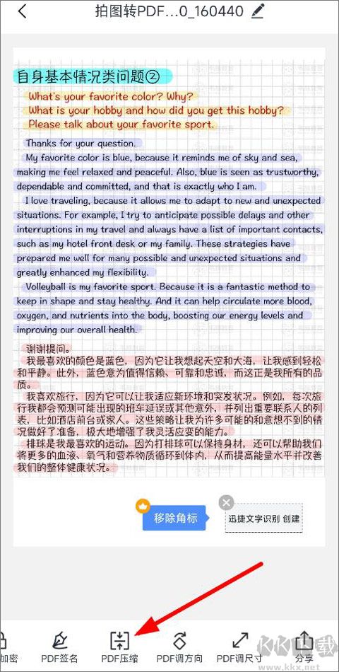 5、照片完成識(shí)別后,系統(tǒng)支持添加水印、PDF 加密、PDF 簽名等操作,點(diǎn)擊 “PDF 壓縮” 選項(xiàng),選擇合適的壓縮大小,隨后即可在文檔頁(yè)面查看到已成功轉(zhuǎn)換的 PDF 文件。