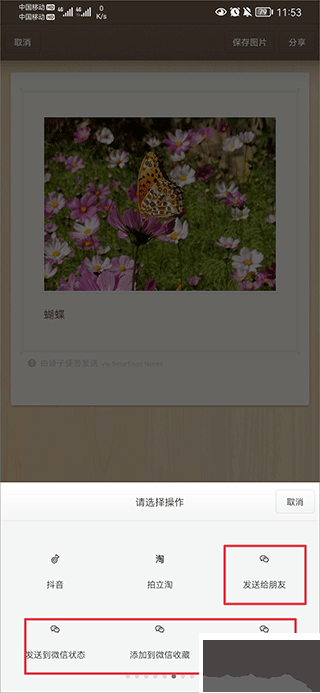 3、最后點擊右上角的分享按鈕,在下方選項中可選擇發(fā)送給微信朋友、分享至朋友圈、收藏等操作。
