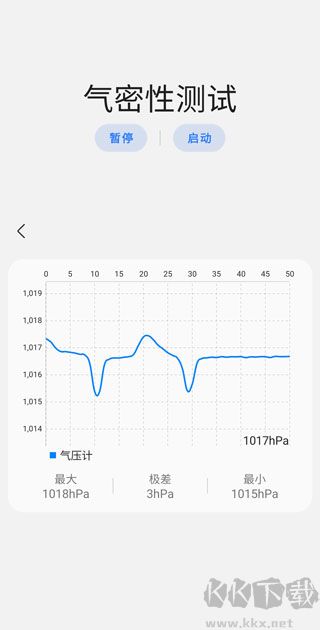 1、氣密性測(cè)試功能:測(cè)試可暫停啟動(dòng),自動(dòng)計(jì)算壓力極差,顯示最值,入口設(shè)置在主頁(yè)或關(guān)于手機(jī)界面。