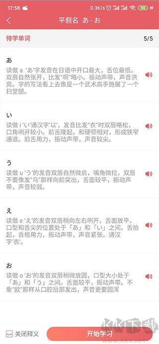 萊特日語(yǔ)背單詞安卓版這款軟件別錯(cuò)過(guò),它特別專業(yè),能按照你的日語(yǔ)水平制定專屬學(xué)習(xí)計(jì)劃,不管是剛?cè)腴T還是高階學(xué)習(xí)者,都有對(duì)應(yīng)的教學(xué)內(nèi)容,片假名、發(fā)音、例句啥都有,一站式學(xué)日語(yǔ)超方便,它還會(huì)用手寫、動(dòng)畫、演示這些有趣的方式教學(xué),把難學(xué)的知識(shí)變簡(jiǎn)單,幫你快速掌握日語(yǔ),想學(xué)日語(yǔ)的,趕緊來(lái)kk下載站下載試試。