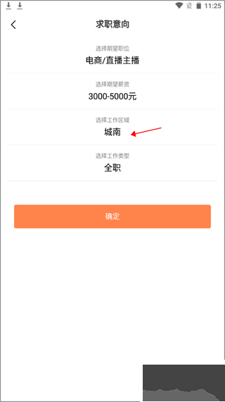 2、選擇修改區(qū)域:在求職意向頁面,點(diǎn)擊 “選擇工作區(qū)域”,進(jìn)入地址修改界面 。