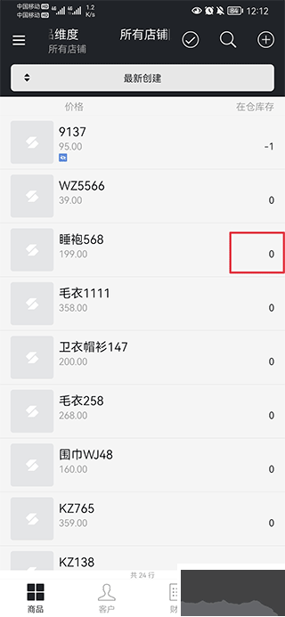 4、確認(rèn)清零結(jié)果:返回商品主界面,即可查看該商品庫存已成功清零 。