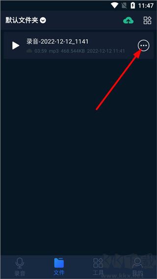 2、選定導出錄音:在文件頁面中,找到要導出的那條錄音,點擊其左側的【...】圖標。