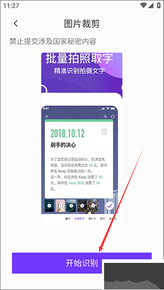3、對(duì)選中圖片進(jìn)行裁剪,框選具體需識(shí)別的文字區(qū)域,確認(rèn)后進(jìn)入下一步操作。