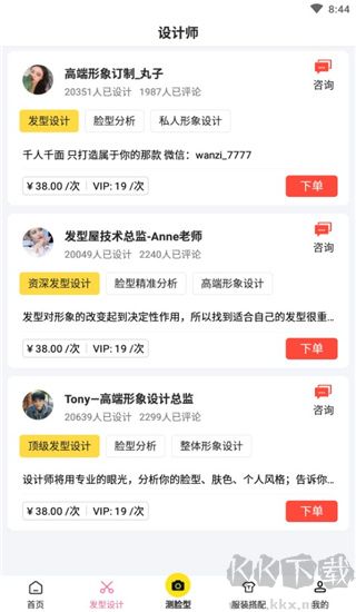 2、專業(yè)設(shè)計(jì)服務(wù):由資深發(fā)型師團(tuán)隊(duì)提供在線咨詢,根據(jù)臉型、發(fā)質(zhì)量身推薦發(fā)型,解決搭配難題。
