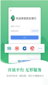 開放平臺,任何用戶都可使用手機號注冊,使用他行卡進行便捷支付