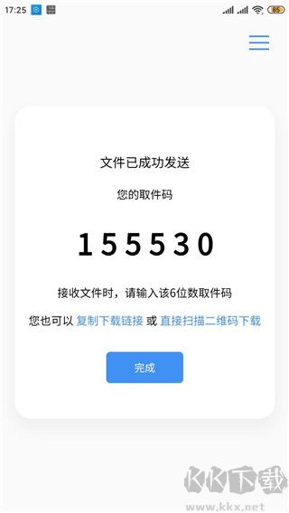 5、在其他手機(jī)或電腦上點(diǎn)擊接收,輸入取件碼即可下載文件。