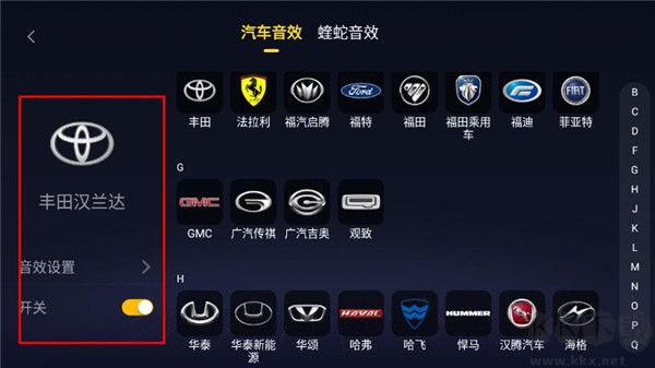 2、在音效設(shè)置頁面,根據(jù)車型選擇對應(yīng)的預(yù)設(shè)音效,提升車載音質(zhì)體驗。