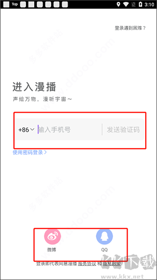 1、首先進(jìn)行賬號(hào)登錄,支持使用手機(jī)號(hào)、微博、QQ三種登錄方式;