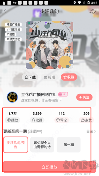 4、在播放廣播劇的同時(shí)不僅可以看到字幕,還可以在上分看到小伙伴們發(fā)送的彈幕;