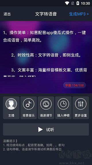 2、【免費體驗】一百字以內(nèi)的文本可以免費轉(zhuǎn)換成語音,還能直接下載保存,零成本試用。