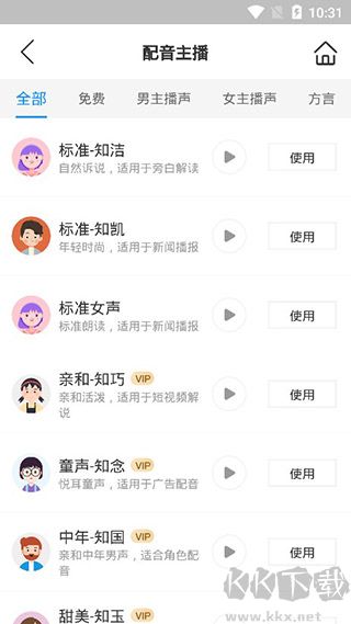 3、【真人級發(fā)音】70多種主播聲音可選,涵蓋11種方言和語言,包括普通話、粵語、四川話、東北話、湖南話、臺灣腔、陜西話、河南話、湖北話,還有英式英語和美式英語。