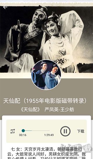 2、免費欣賞經(jīng)典音頻唱段:收錄《天仙配》《女駙馬》等劇目,想聽就聽隨時播放。
