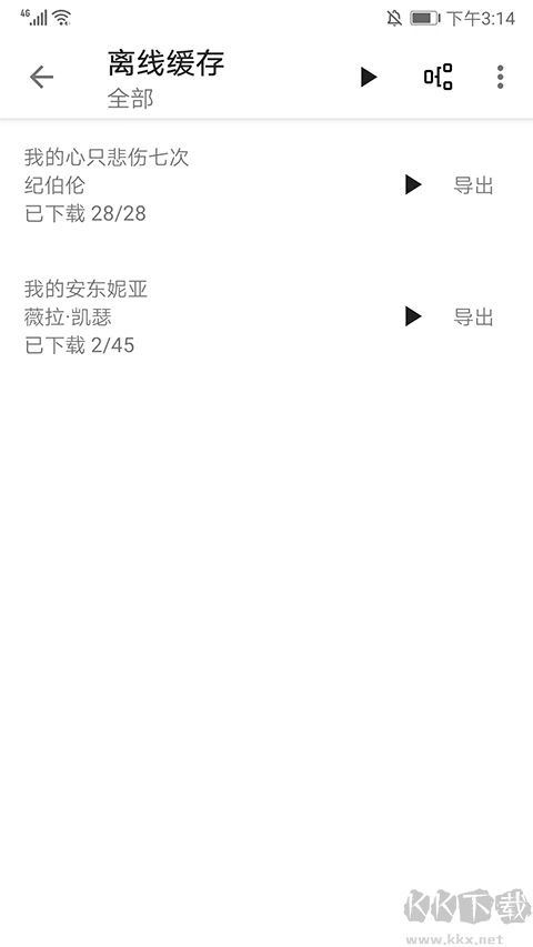 2、進(jìn)入離線緩存界面,選擇需要緩存的小說(shuō)后面的【導(dǎo)出】選項(xiàng),這里以我的心只悲傷七次為例,