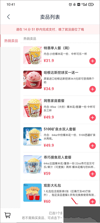 4、如果有想吃的東西可以加入到購物車,到時(shí)候一起付錢,不想購買直接進(jìn)入下一步。
