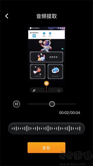 3、其實(shí)音頻提取功能也很簡單,導(dǎo)入素材后點(diǎn)擊提取就可以啦!
