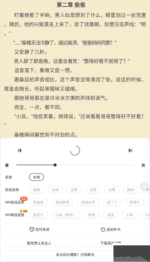 2、點擊之后即可開始聽書啦,你還可以在下方切換不同的音色聽書哦~