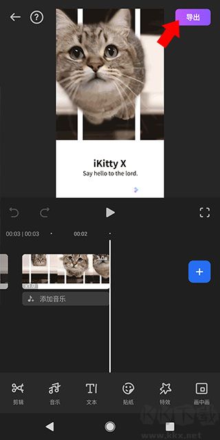 6、編輯完畢之后,點(diǎn)擊右上角的“導(dǎo)出”,即可導(dǎo)出視頻文件。