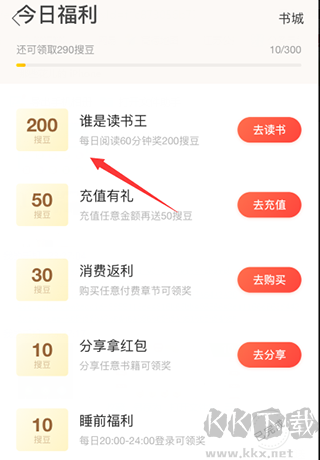 6、其中有一項可以清楚的看到,讀書滿60分鐘即可完成“誰是讀書王“任務,可以獲得200搜豆,這是任務獎勵中最大的、
