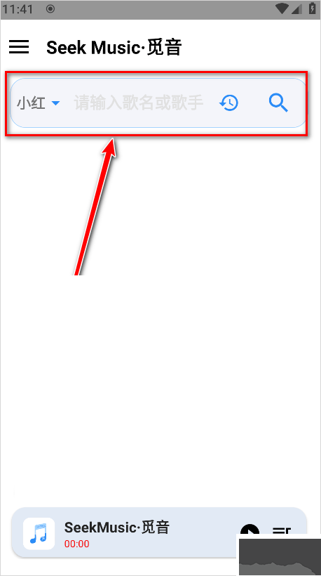 1、在本站下載安裝好SeekMusic覓音app,運(yùn)行軟件并且授權(quán),然后在首頁(yè)點(diǎn)擊搜索你想要的音樂(lè)