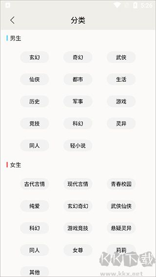 4、點(diǎn)擊分類,可以按照你自己喜歡的類型進(jìn)行查找書籍;