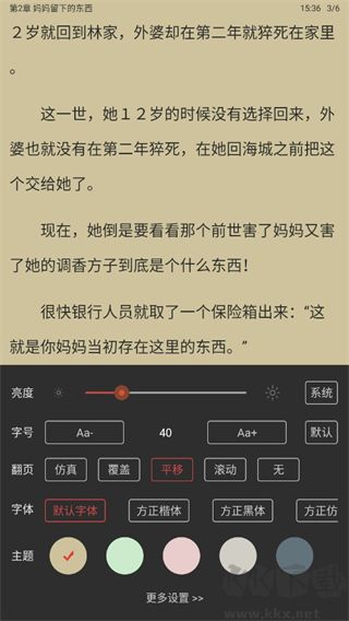 支持字體/字號自定義、閱讀背景切換、自動(dòng)翻頁等功能,打造專屬閱讀空間。