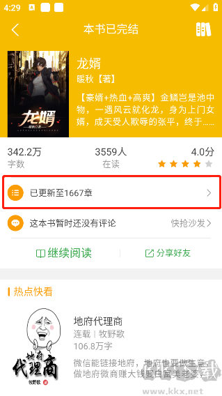3、在書籍詳情界面,找到「章節(jié)列表」或「目錄」選項,點擊進入。
