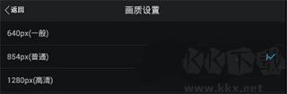 3、在“畫質(zhì)設(shè)置”界面中,選擇自己需要的畫質(zhì)(640px、854px、1280px)即可。