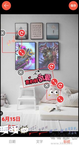 內(nèi)含豐富裝飾素材,包含貼紙、文字、馬賽克及涂鴉工具,讓創(chuàng)意隨心發(fā)揮。