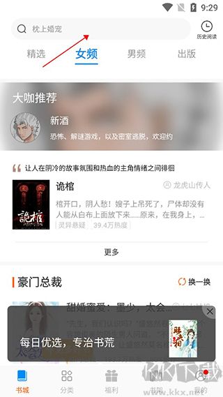 1、精品好書:都市生活、浪漫言情、奇幻玄幻、懸疑推理、穿越重生,精心挑選大量熱門、高口碑作品,各類題材應(yīng)有盡有,讓你輕松找到心儀好書。