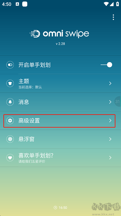 2、安裝后在高級(jí)設(shè)置中選擇可劃出的時(shí)機(jī)。