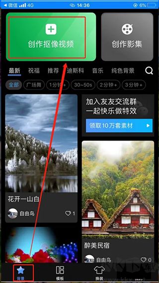2、進入背景界面,點擊創(chuàng)作摳像視頻。