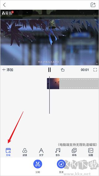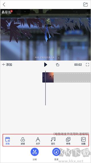4、選中該素材并點擊√,即可在底下各種功能進行編輯;