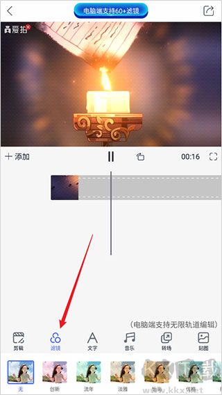 6、點擊【濾鏡】,可以給視頻添加濾鏡效果;