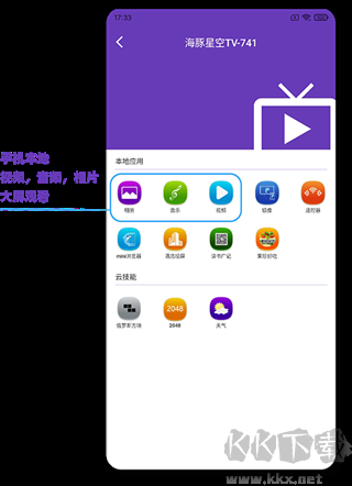 您可以在本地應(yīng)用列表中,將視頻,音頻,相片投射到大屏接收端上觀看,也可以使用鏡像功能將手機屏幕同步到大屏上。