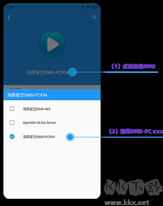 手機 APP 掃碼電腦發(fā)送端的分享二維碼后,選擇電腦的DMS,就可以像控制本地媒體資源一樣投射電腦上的照片,音樂,視頻到接收端上。
