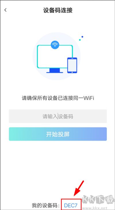 3、電腦端幕享點(diǎn)擊【屏幕鏡像】——【設(shè)備碼連接】。將剛剛 手機(jī)端【我的投屏碼】輸入在下方方框內(nèi),手機(jī)就成功投屏在電腦上了