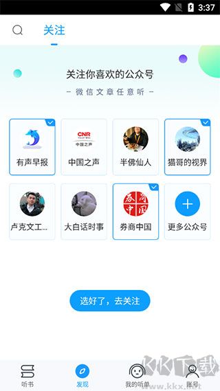 1、進(jìn)入愛聽書app官方版,可以關(guān)注喜歡的公眾號。