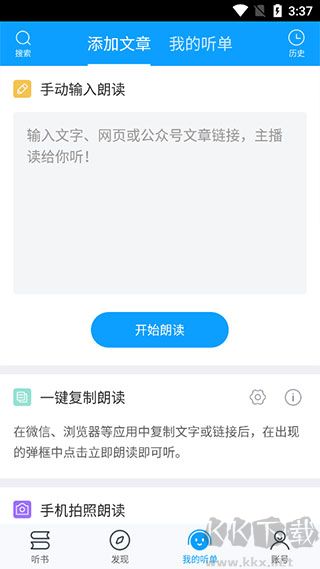 可朗讀其他應(yīng)用的網(wǎng)頁內(nèi)容,復(fù)制鏈接就能聽,支持網(wǎng)易新聞、知乎、UC、今日頭條等平臺的文章,想聽就聽!