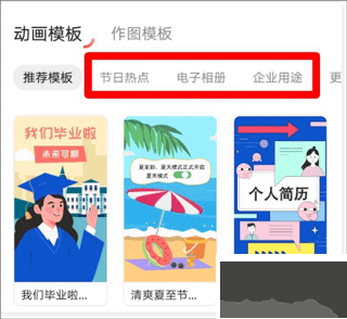 1、進(jìn)入app首頁往下拉,可以看到不同場景分類的模板,如果在這些分類中沒有找到想要的模板,可以左滑分類找到【更多模板】進(jìn)入【模板中心】